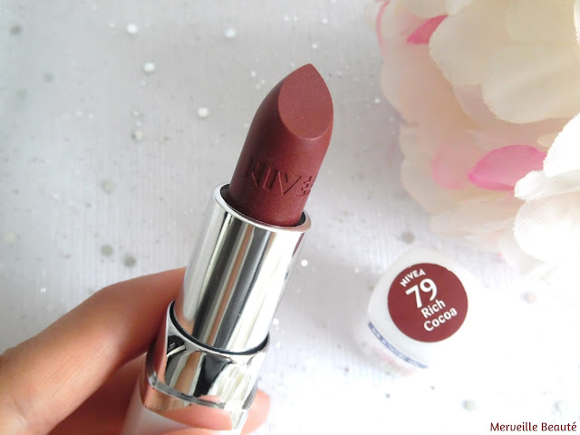 Depuis quelques temps les rouges à lèvres marrons sont devenus très tendances. En voyant quelques photos sur Instagram je me suis dis qu'il fallait que je me lance également et j'ai craqué pour le rouge à lèvres Nivea en teinte "79 Rich Cocoa".